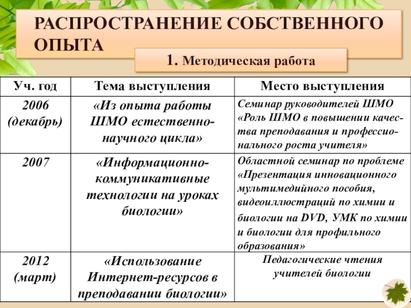 Выступление на семинаре руководителей ШМО «Роль ШМО в повышении качества преподавания и профессионального роста учителя». Декабрь 2006 г.