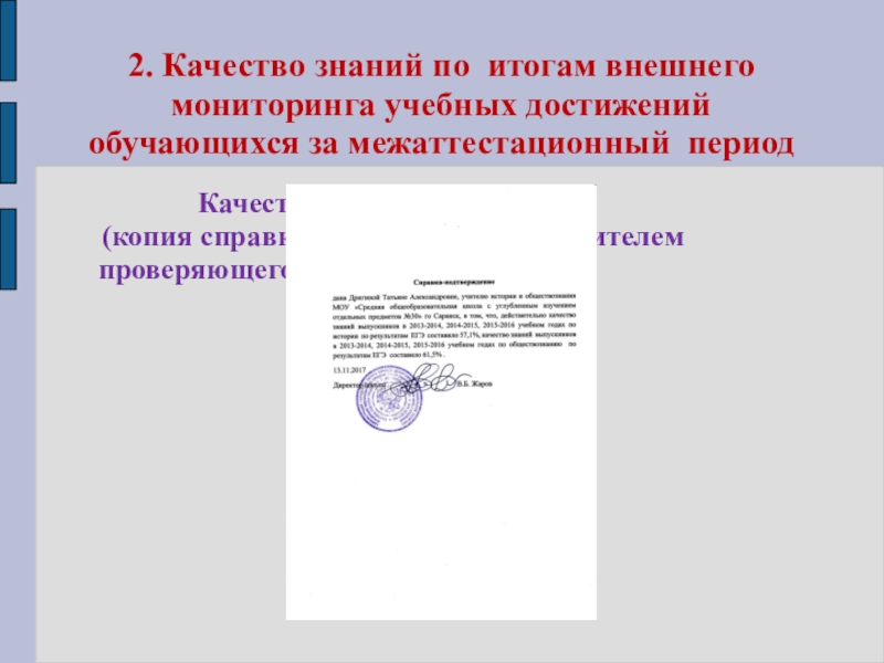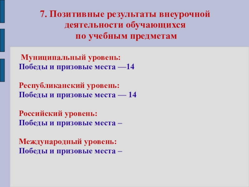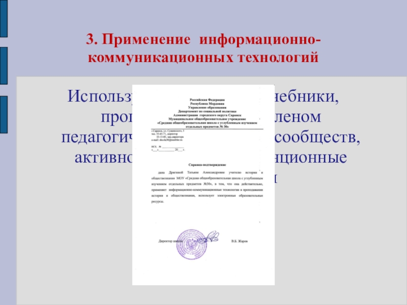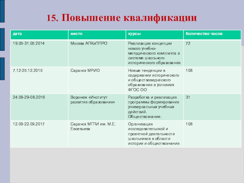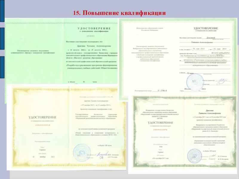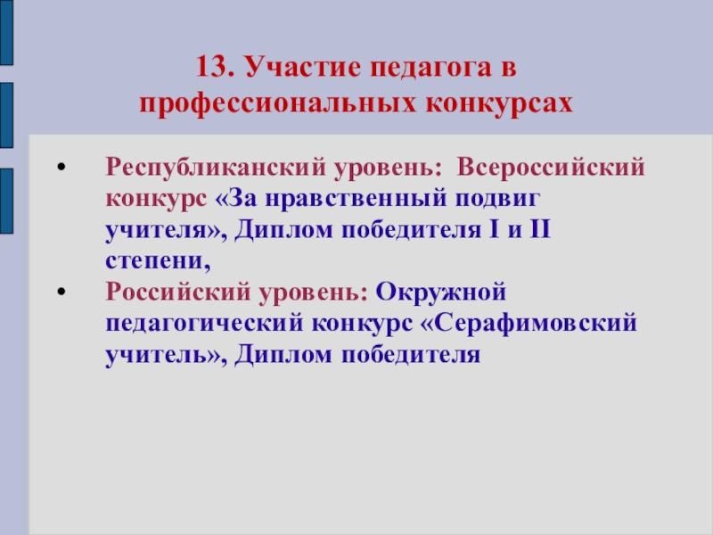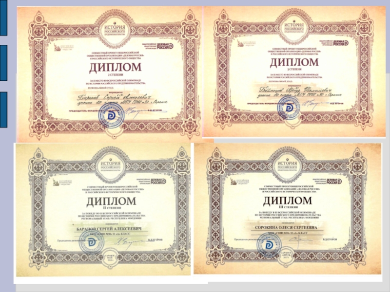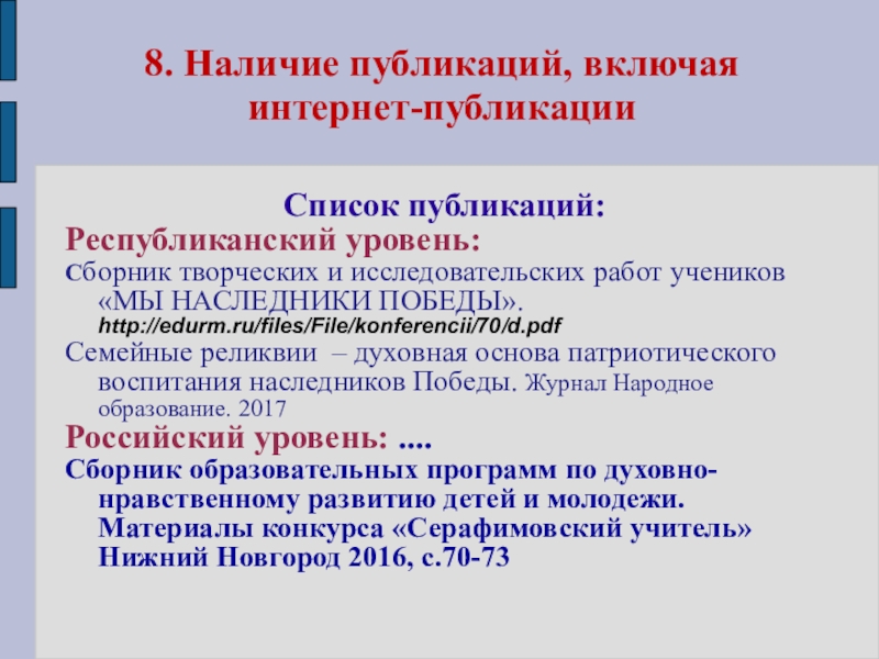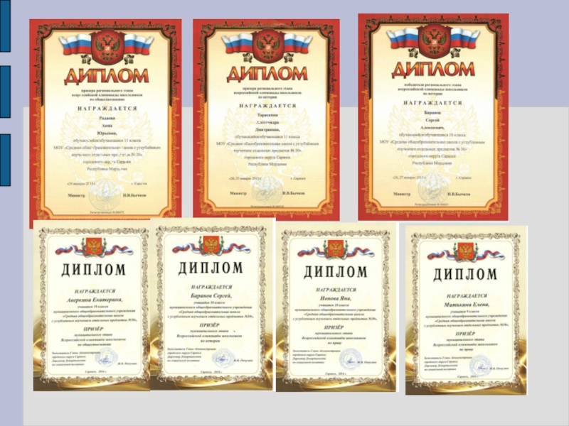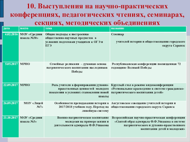 Республиканский уровень: член жюри республиканских конкурсов «История школы в истории Мордовии» и «Юный архивист», год 2016, 2017.