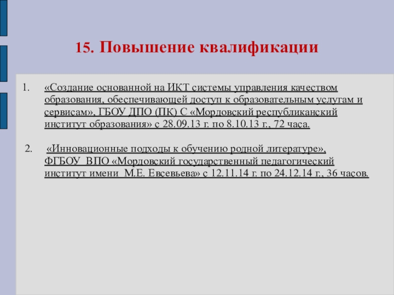 - выступление «Роль творческой индивидуальности в мордовской литературе» на Международной научно-практической конференции с элементами научной школы для молодых ученых «51-е Евсевьевские чтения», 14-15 мая 2015 года.