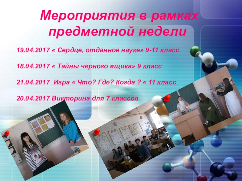 Слайд 24 Мероприятия в рамках предметной недели