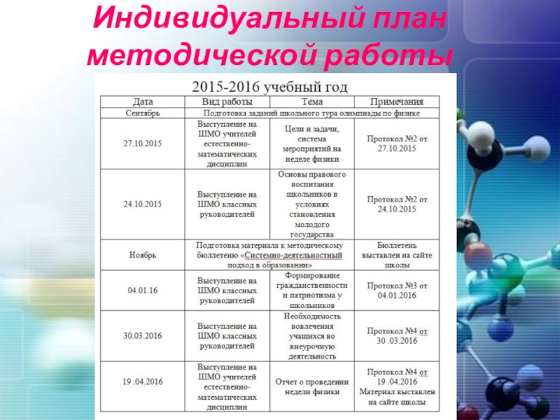 Слайд 12Индивидуальный план методической работы