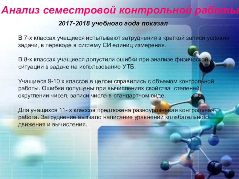Слайд 21 Анализ семестровой контрольной работы