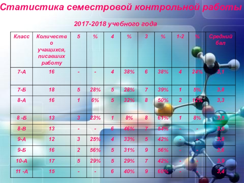 Слайд 20Статистика семестровой контрольной работы