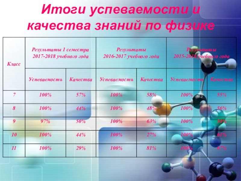 Слайд 18Итоги успеваемости и качества знаний по физике