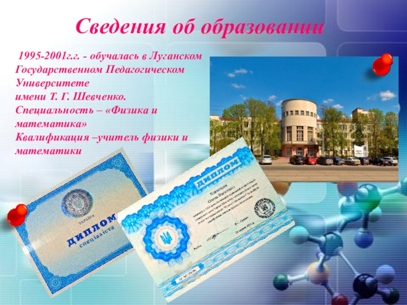 Слайд 2 Сведения об образовании