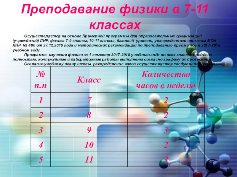 Слайд 17Преподавание физики в 7-11 классах
