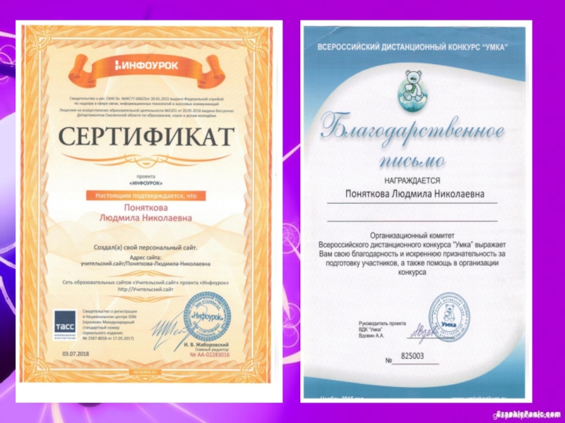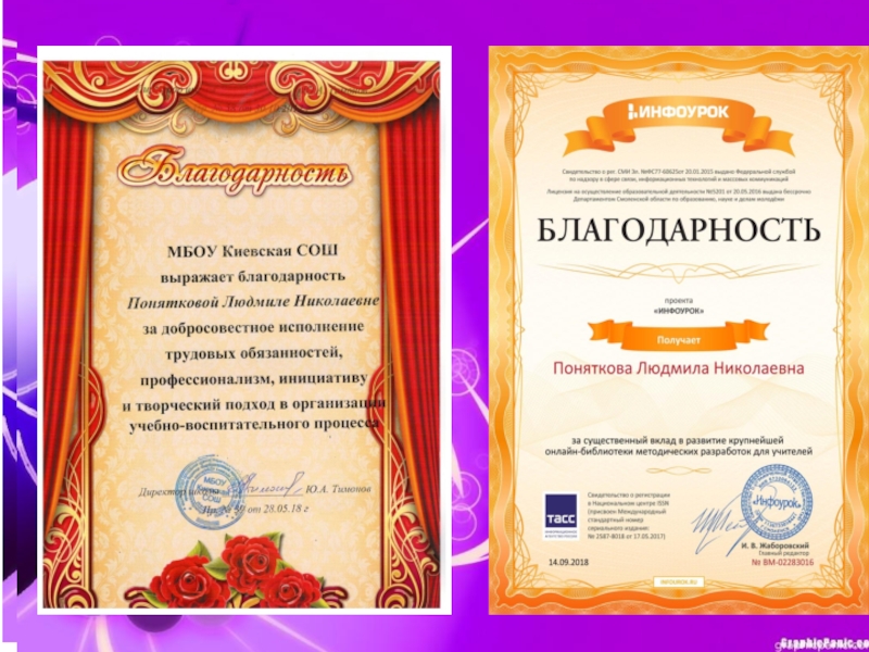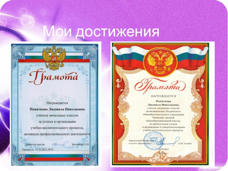 Презентация, доклад Портфолио учителя Понятковой Людмилы Николаевны
