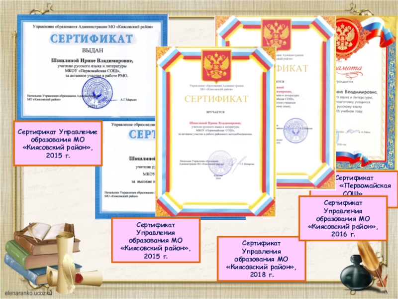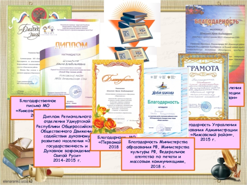 Благодарность Управления образования Администрации МО «Киясовский район», 2015 г.