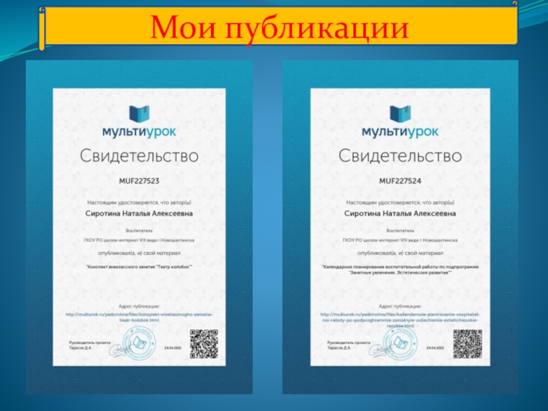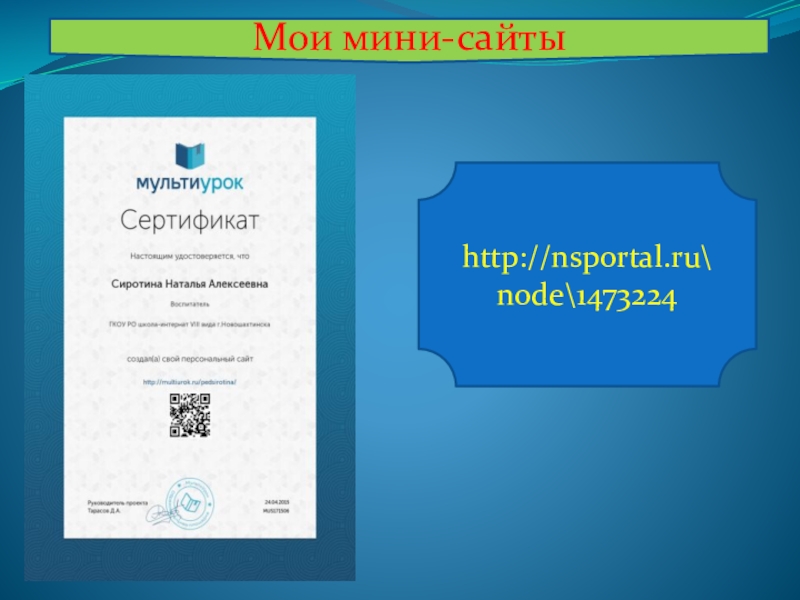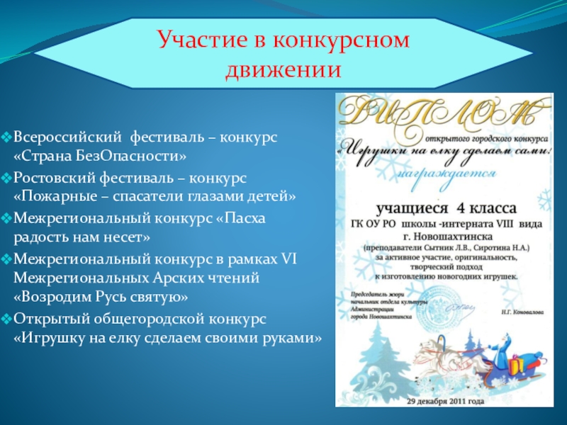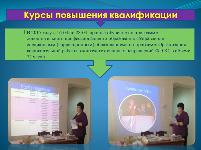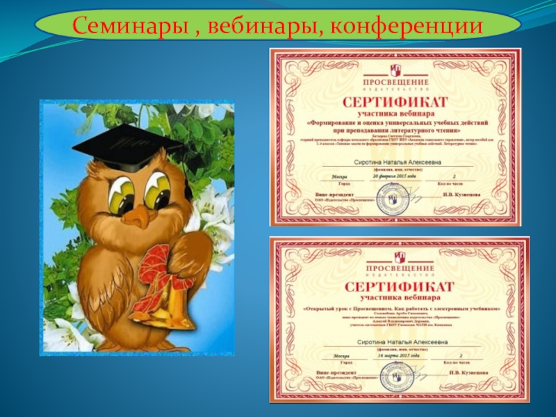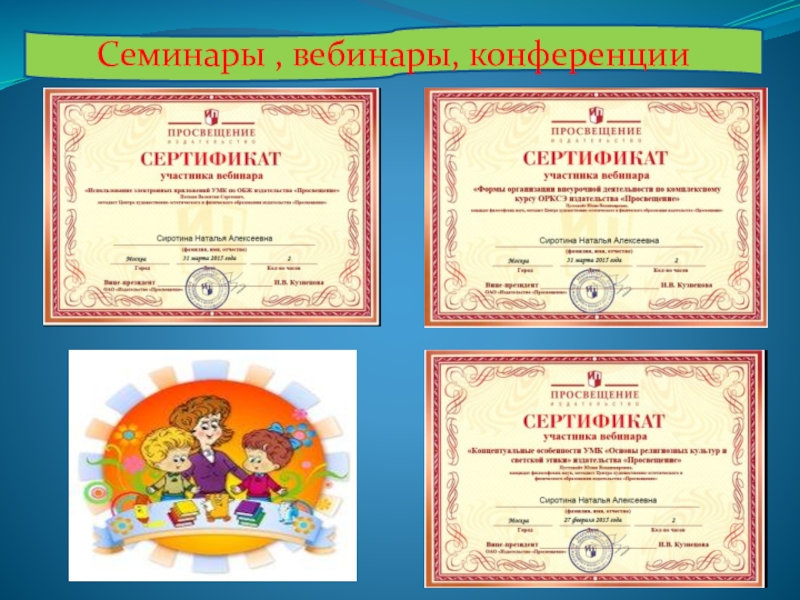 В 2011г с 21.03 по 23.03 приняла участие работе обучающего семинара для учителей по предмету «Основы православной культуры», в объеме 25 часов