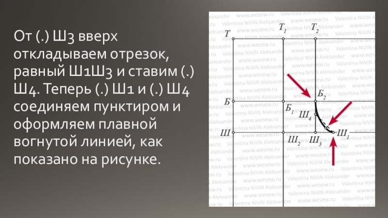 Слайд 11От (.) Ш3 вверх откладываем отрезок, равный Ш1Ш3 и ставим (.)
