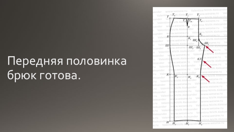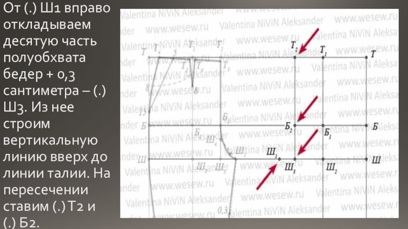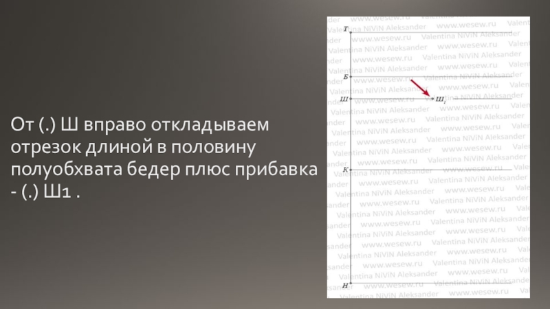 Слайд 23От (.) Ш1 вправо откладываем десятую часть полуобхвата бедер + 0,3
