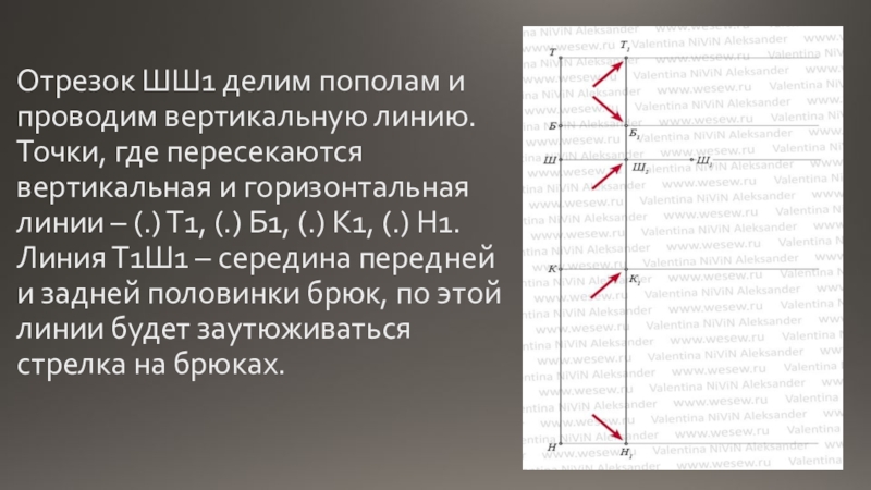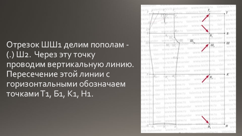 Слайд 9Отрезок ШШ1 делим пополам и проводим вертикальную линию. Точки, где пересекаются