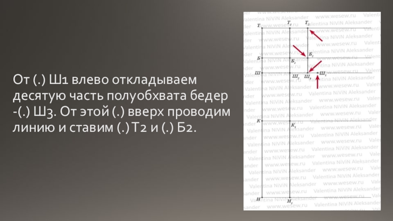Слайд 10От (.) Ш1 влево откладываем десятую часть полуобхвата бедер -(.) Ш3.