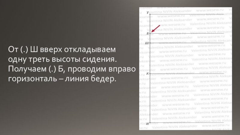 Слайд 7От (.) Ш вверх откладываем одну треть высоты сидения. Получаем (.)