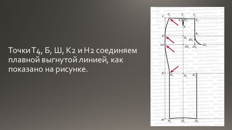 Слайд 16Точки Т4, Б, Ш, К2 и Н2 соединяем плавной выгнутой линией,