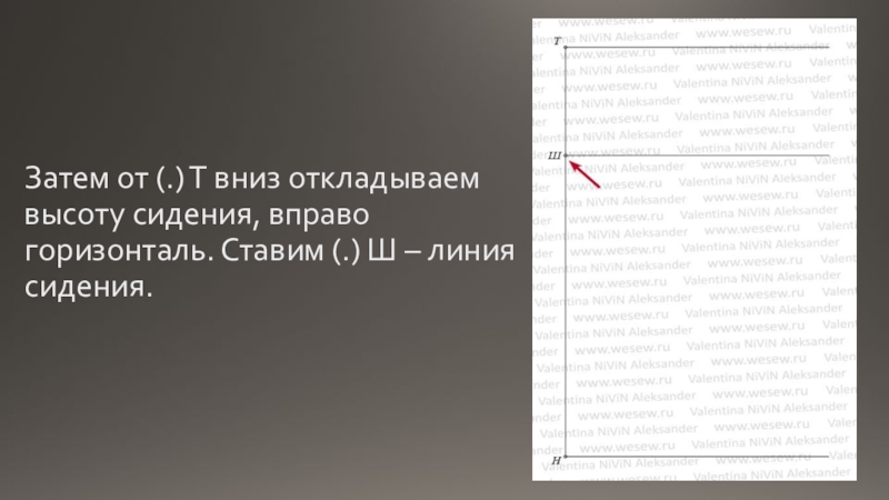 Слайд 5Затем от (.) Т вниз откладываем высоту сидения, вправо горизонталь. Ставим