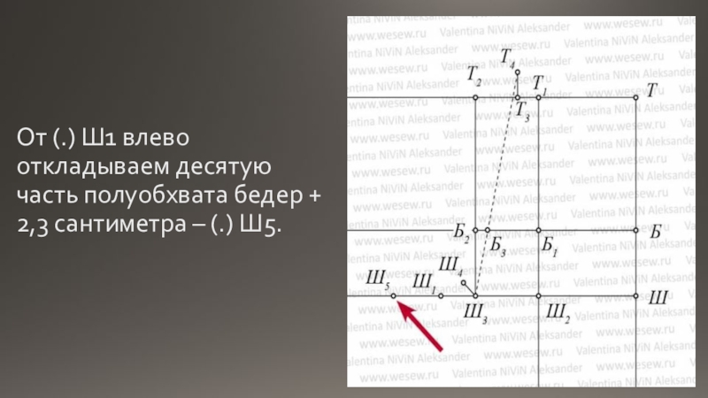 Слайд 25От (.) Ш1 влево откладываем десятую часть полуобхвата бедер + 2,3