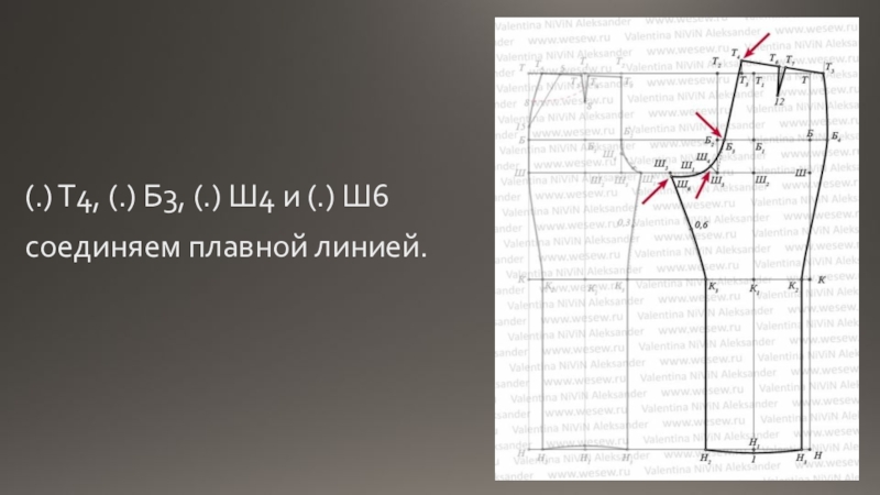 Слайд 32(.) Т4, (.) Б3, (.) Ш4 и (.) Ш6 соединяем плавной