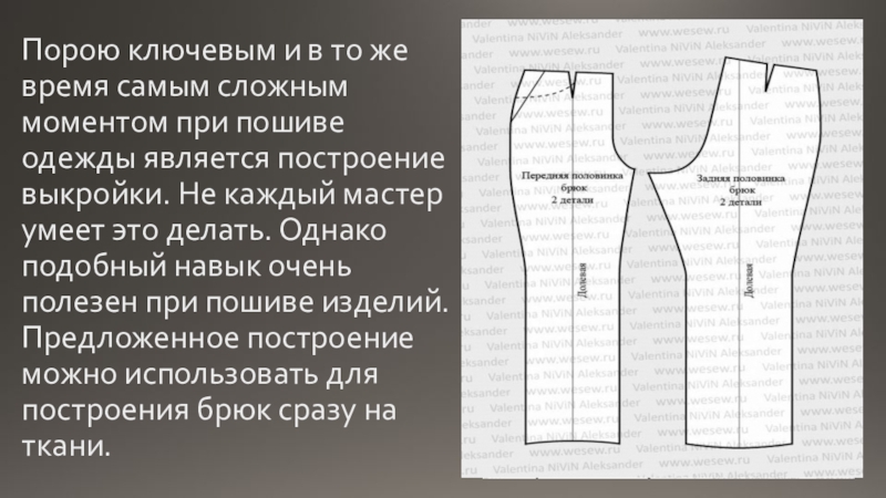Предложенное построение можно использовать для построения брюк сразу на ткани.