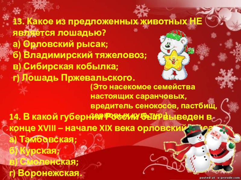 14. В какой губернии России был выведен в конце XVIII – начале XIX века орловский рысак?