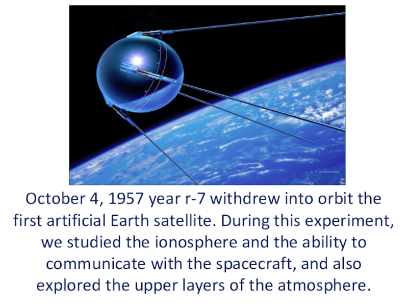 Слайд 14October 4, 1957 year r-7 withdrew into orbit the first artificial