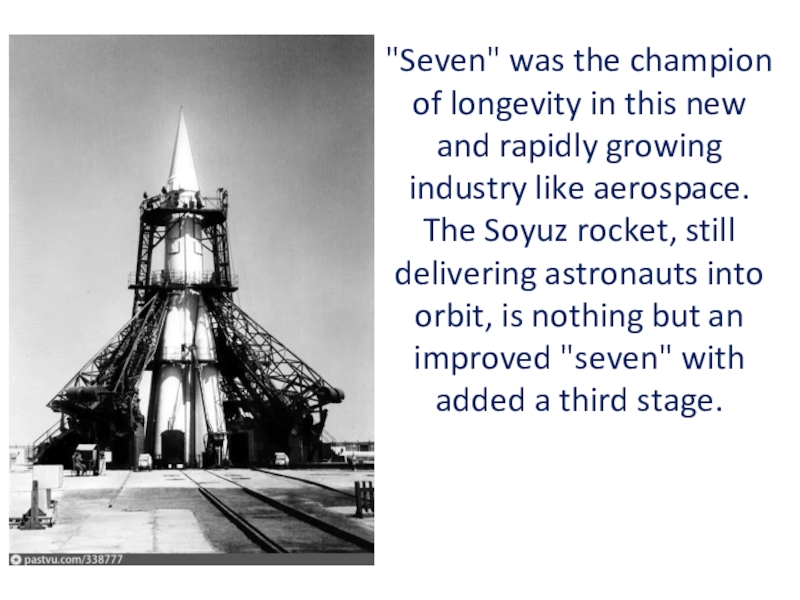 growing industry like aerospace. The Soyuz rocket, still delivering astronauts into orbit, is nothing but an improved "seven" with added a third stage.