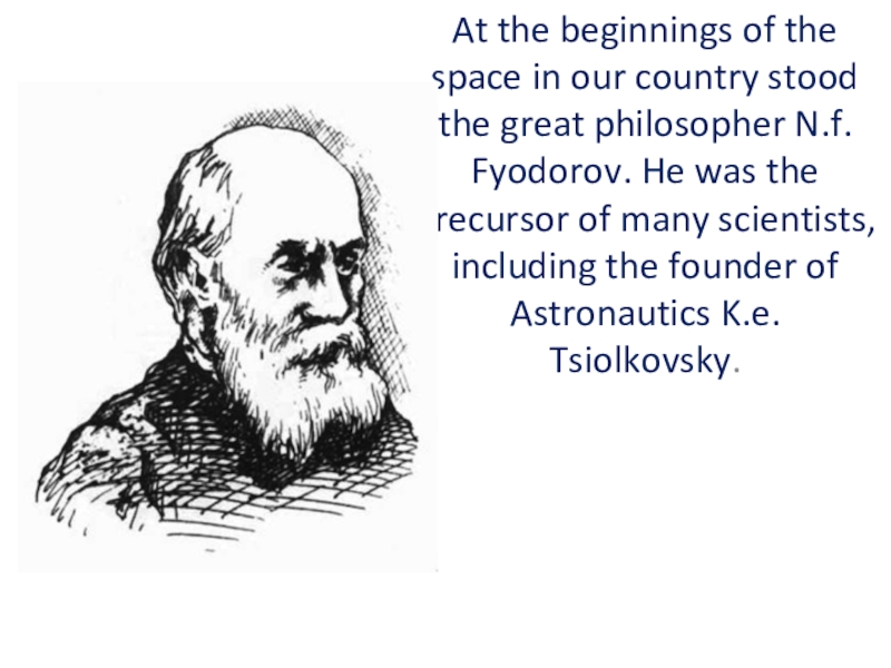 great philosopher N.f. Fyodorov. He was the precursor of many scientists, including the founder of Astronautics K.e. Tsiolkovsky.