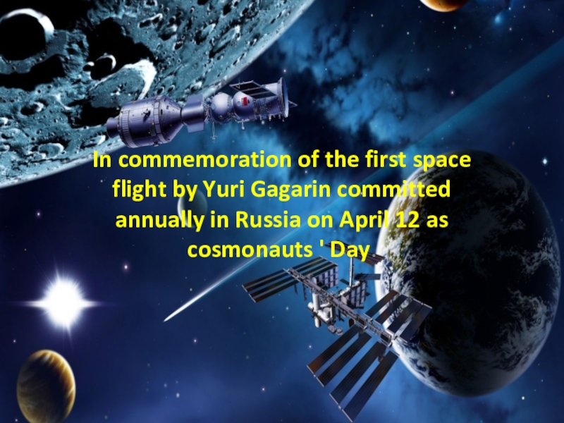 Слайд 25In commemoration of the first space flight by Yuri Gagarin committed