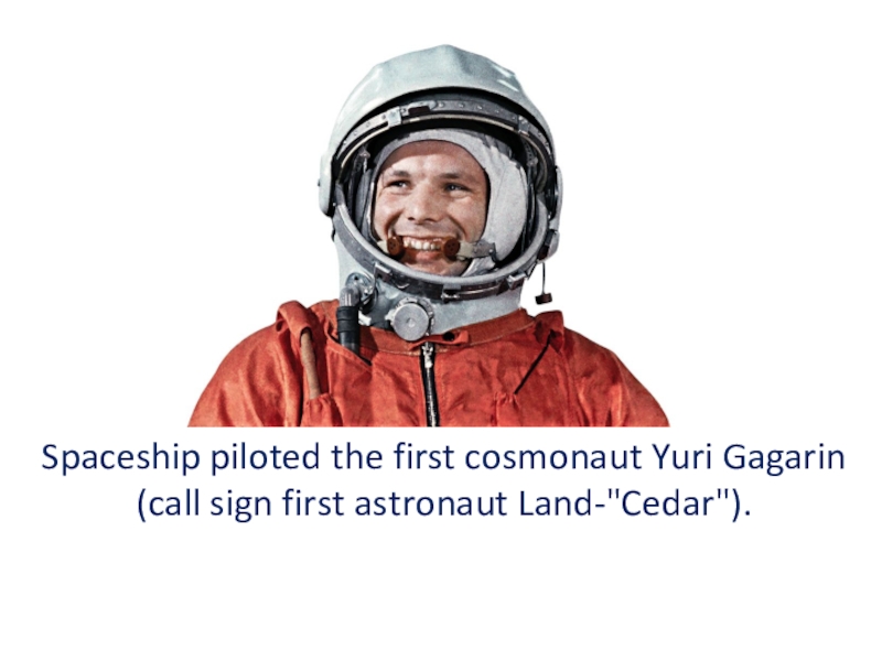 Слайд 23Spaceship piloted the first cosmonaut Yuri Gagarin (call sign first astronaut