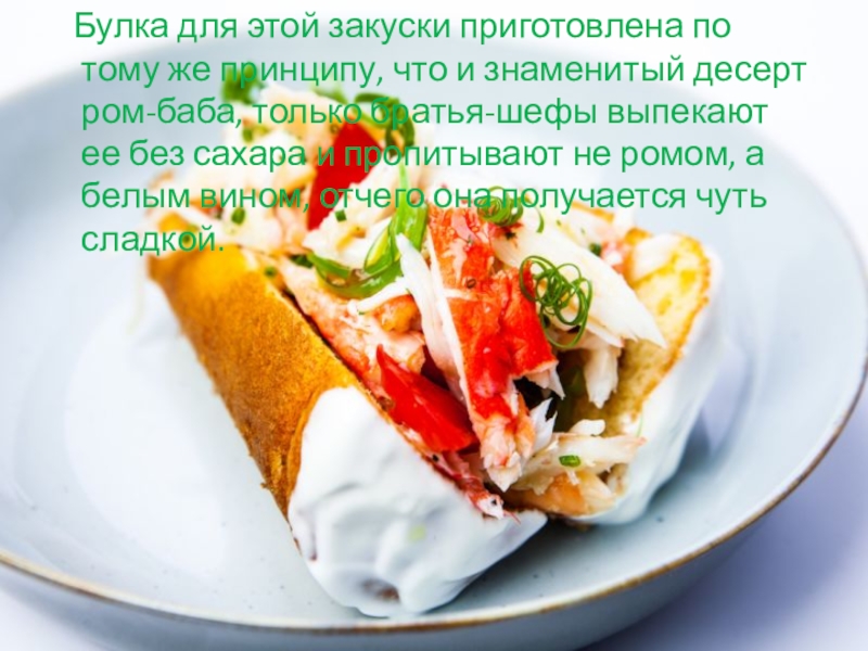 Слайд 15 Булка для этой закуски приготовлена по тому же принципу,
