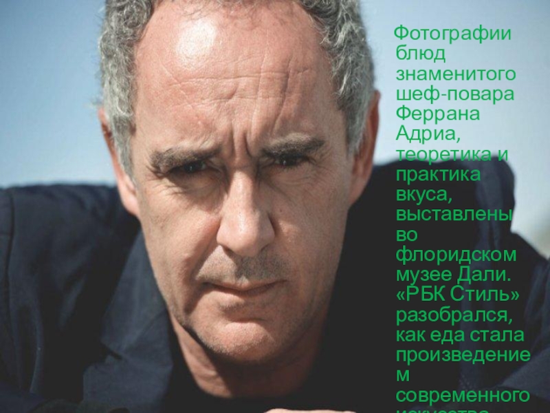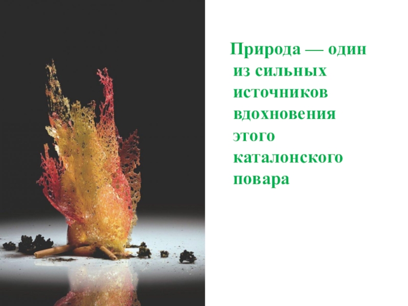 Слайд 3 Фотографии блюд знаменитого шеф-повара Феррана Адриа, теоретика и практика