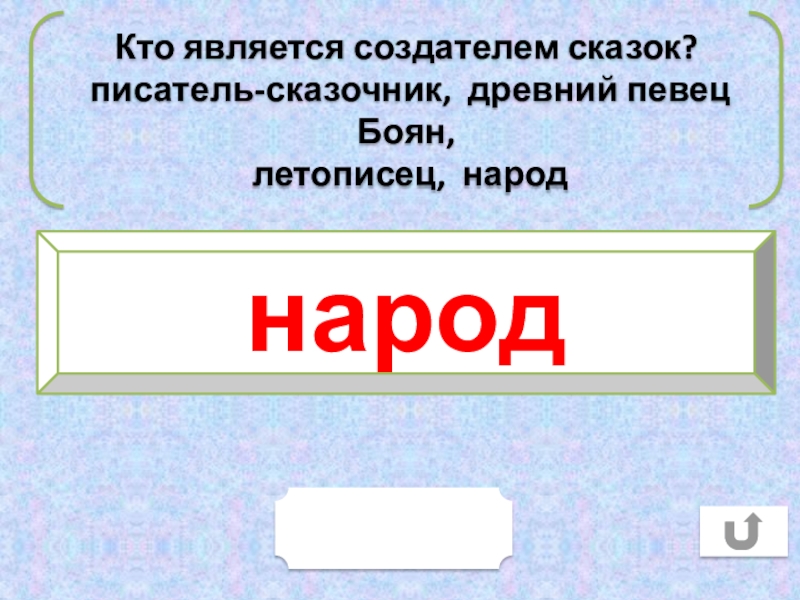 народКто является создателем сказок? писатель-сказочник, древний певец Боян, летописец, народ