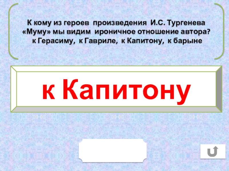 к КапитонуК кому из героев произведения И.С. Тургенева «Муму» мы видим ироничное отношение автора? к Герасиму, к