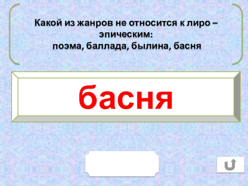 басняКакой из жанров не относится к лиро – эпическим: поэма, баллада, былина, басня