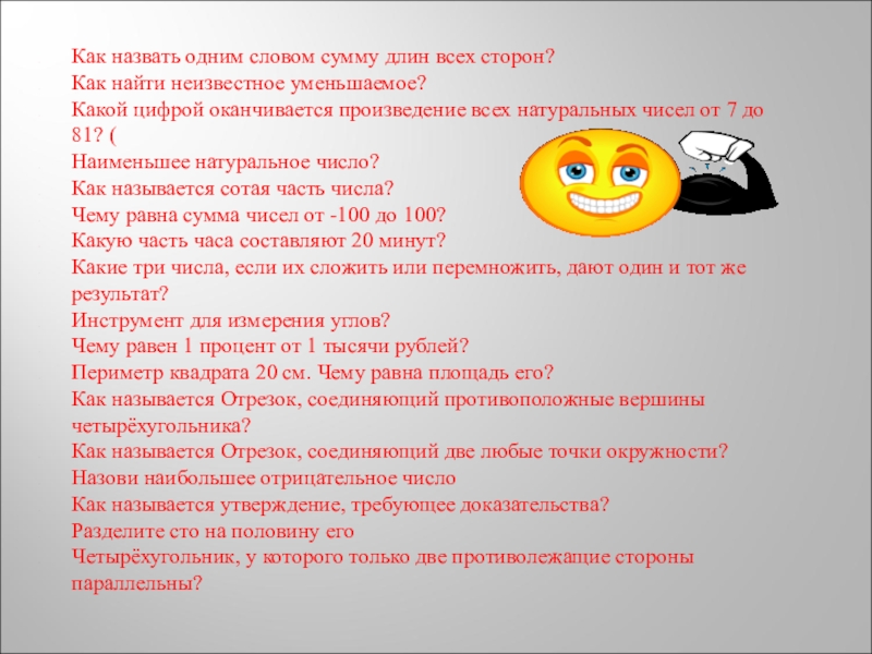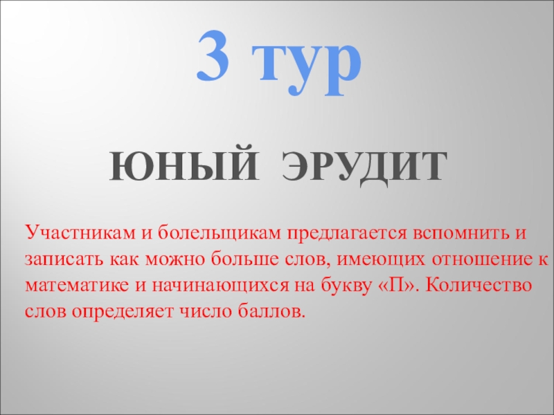 как можно больше слов, имеющих отношение к математике и начинающихся на букву «П». Количество слов определяет число баллов.