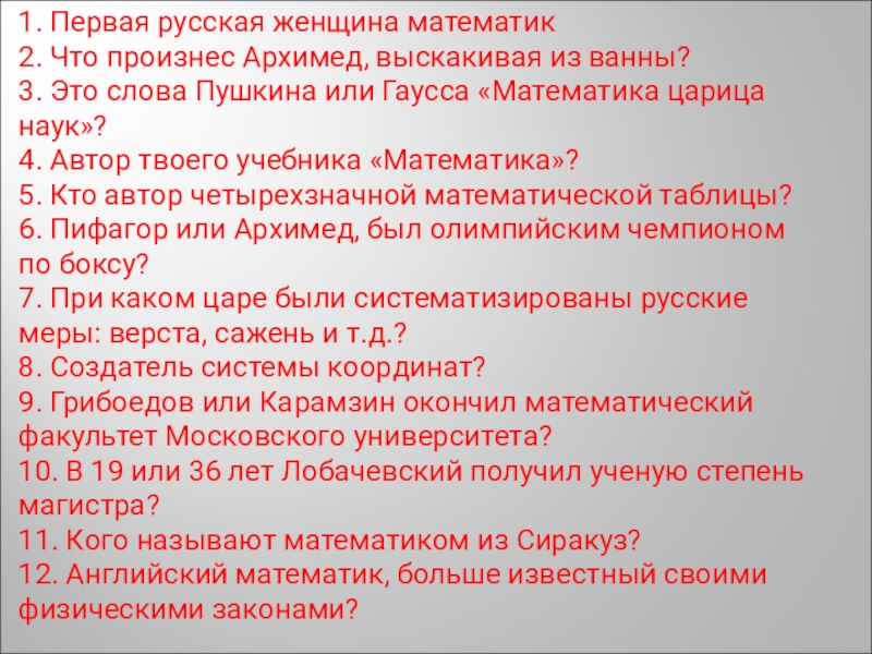 3. Это слова Пушкина или Гаусса «Математика царица наук»?