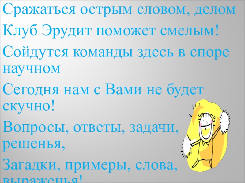 собирается общество не просто людей, а людей веселых, умных и находчивых РАЗРЕШАЕТСЯ: