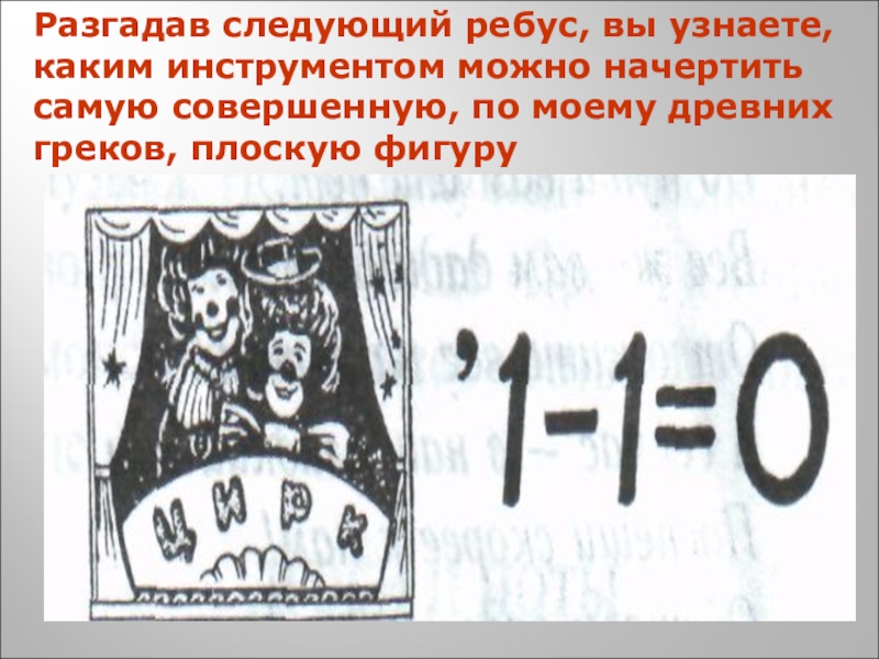 Слайд 31Разгадав следующий ребус, вы узнаете, каким инструментом можно начертить самую совершенную,