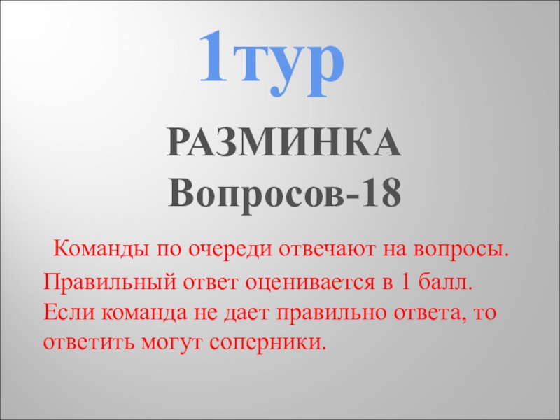 одна команда с числом «1», а другая – с числом «7». На обдумывание даётся 5с. С этим конкурсом команды были ознакомлены заранее. Побеждает команда, которая назовёт большее число пословиц. При равном количестве названных пословиц – ставится одинаковое количество баллов.