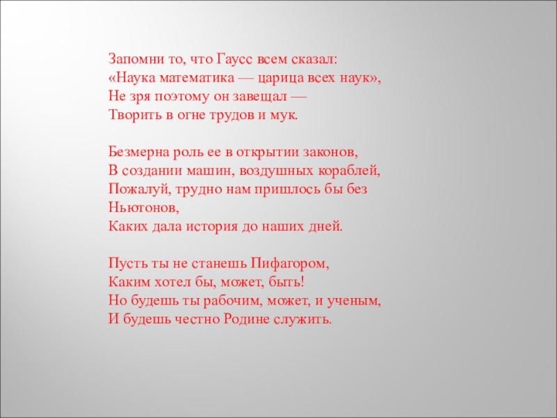 Слайд 34Запомни то, что Гаусс всем сказал:
