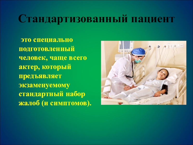 который предъявляет экзаменуемому стандартный набор жалоб (и симптомов).