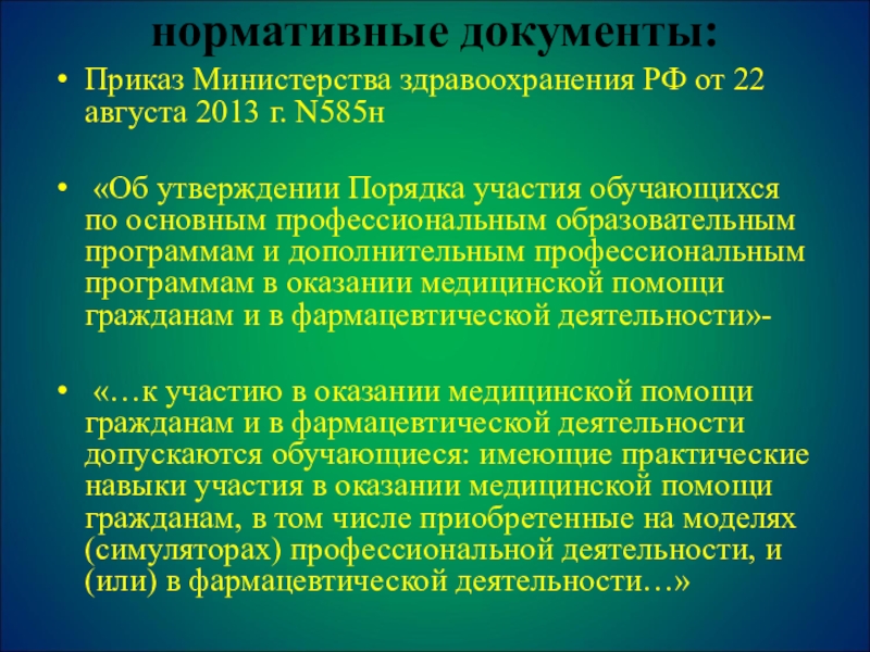 Приказ Министерства здравоохранения РФ от 22 августа 2013 г. N585н