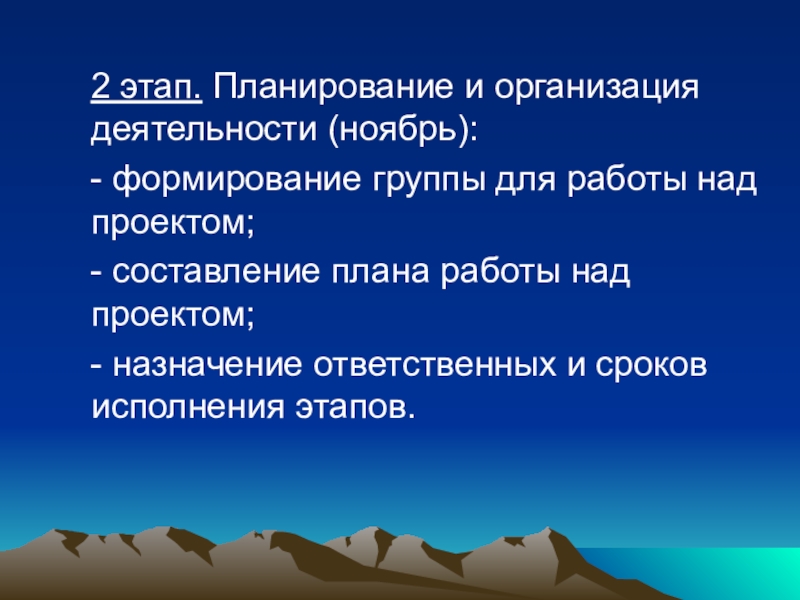 Слайд 6 2 этап. Планирование и организация деятельности (ноябрь):