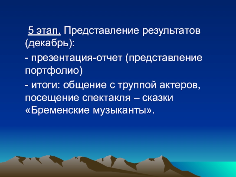 Слайд 17 5 этап. Представление результатов (декабрь):