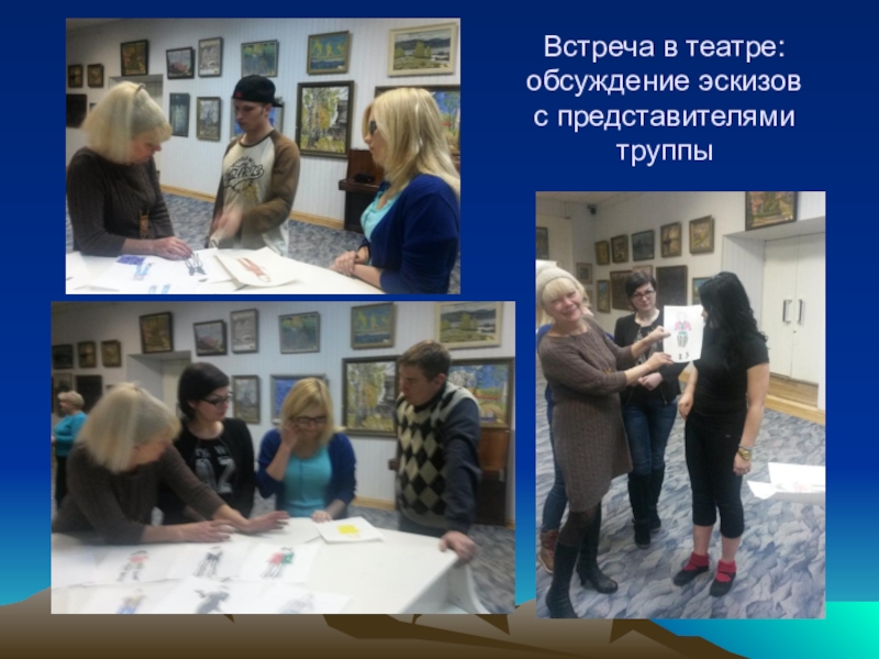 Слайд 14Встреча в театре: обсуждение эскизов с представителями труппы