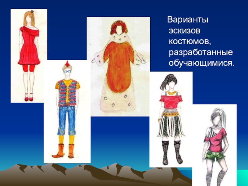 Слайд 13 Варианты эскизов костюмов, разработанные обучающимися.