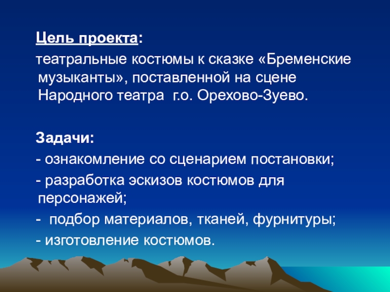 Слайд 1Практико-ориентированный долгосрочный учебный проект на тему: «Костюмы для Народного театра к