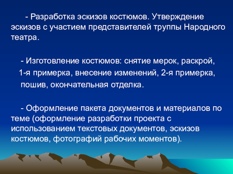 Слайд 12 - Разработка эскизов костюмов. Утверждение эскизов с