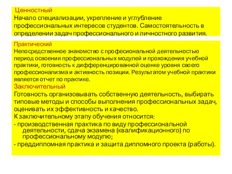 К заключительному этапу обучения относится: