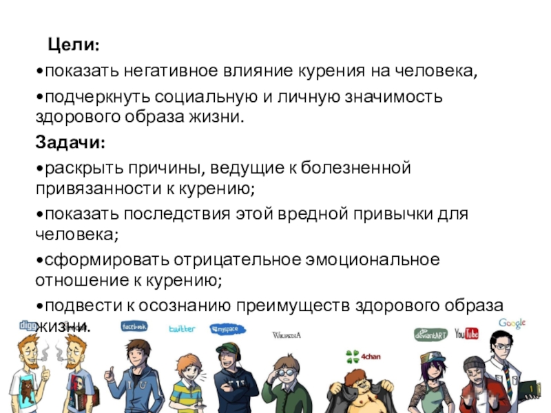 влияния курильщиков и не "заразиться" их привычкой, а также сохранить своё здоровье от продуктов курения.